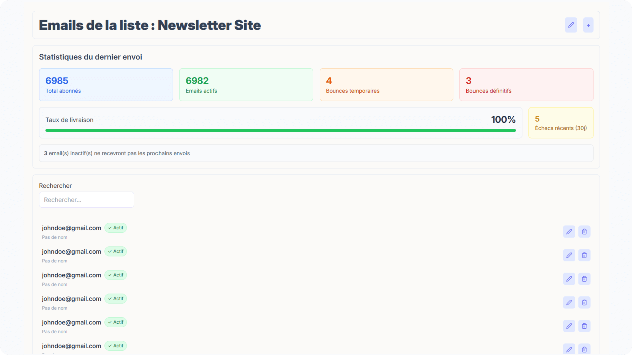 Tout ce dont vous avez besoin pour gérer vos newsletters, intégré directement à votre site.